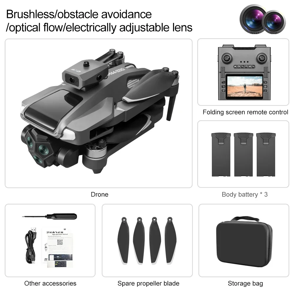 Equipped with a 4K high-definition camera with electrically adjustable shooting angles, this drone captures breathtaking photos and videos from any perspective. The dual lens system features seamless switching between cameras, while WiFi FPV connectivity allows real-time image transmission directly to your smartphone for live viewing and recording.